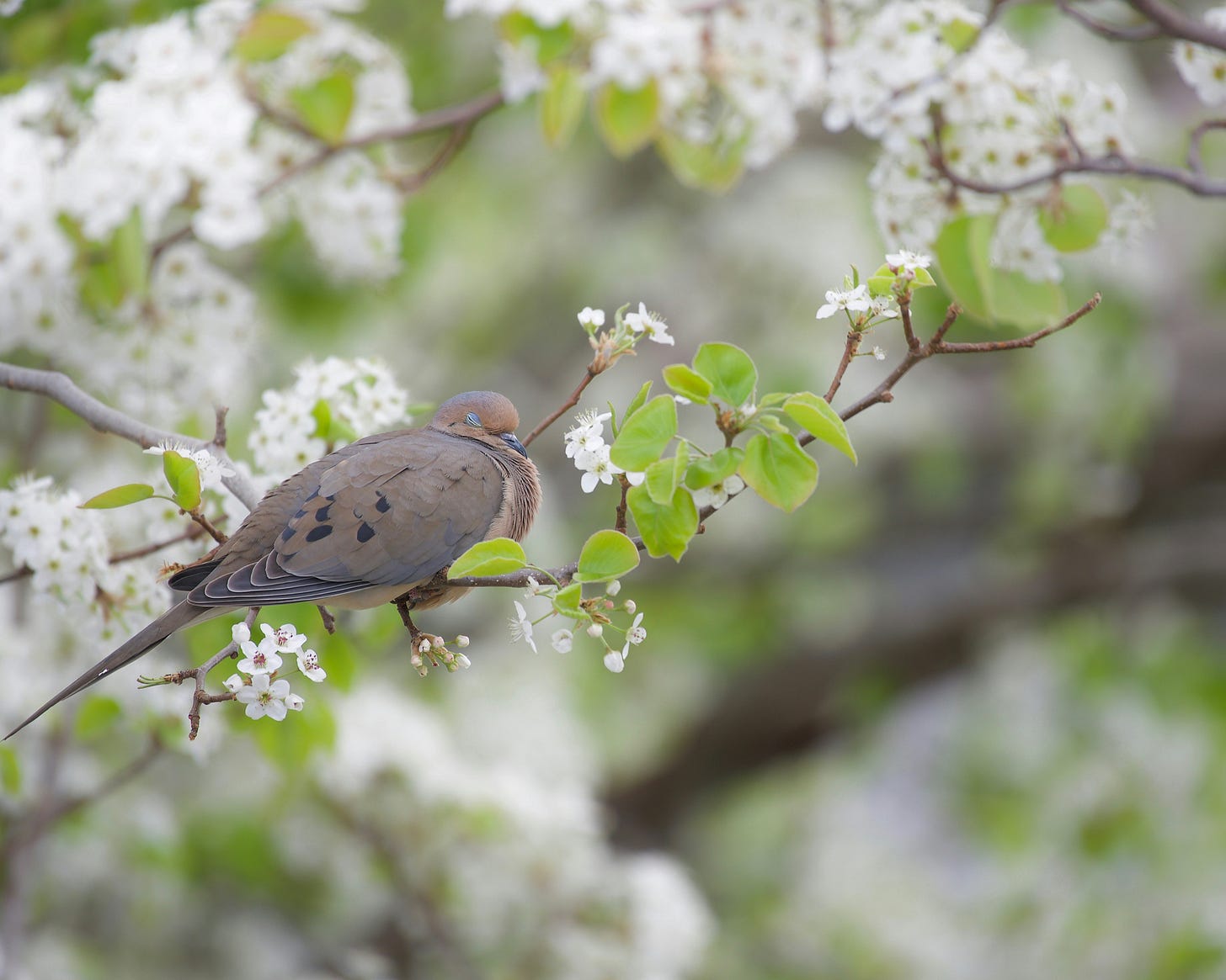 In junior high school, I lived with my mother’s parents in order to attend a better school. Their neighbor showed me a beautiful surprise within the emerald tendrils of her low-hanging fern. A mourning dove had nested right in the middle of her potted plant that hung from a crepe myrtle tree. Each day, I parted the fern leaves to discover the dove roosting on her nest. Amazingly, she allowed me to gently stroke her soft, feathery back. I felt like I could spend forever gazing in serenity at this tranquil picture of comfort and peace.